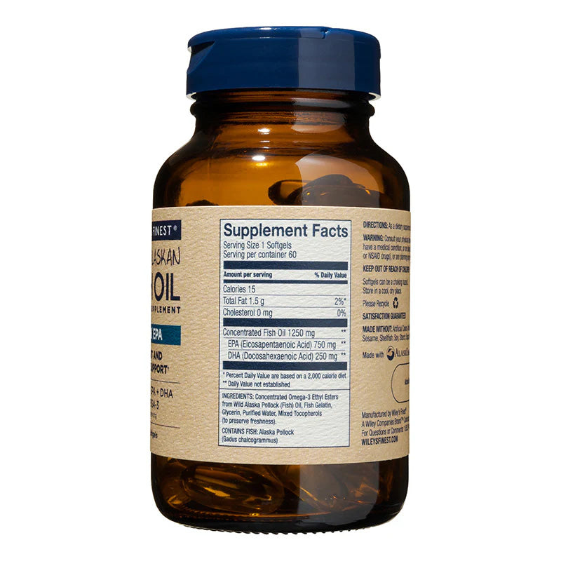 Just 1 softgel a day is all you need! Wiley's Finest Peak EPA is purified and concentrated to provide a mega dose of EPA in every softgel.